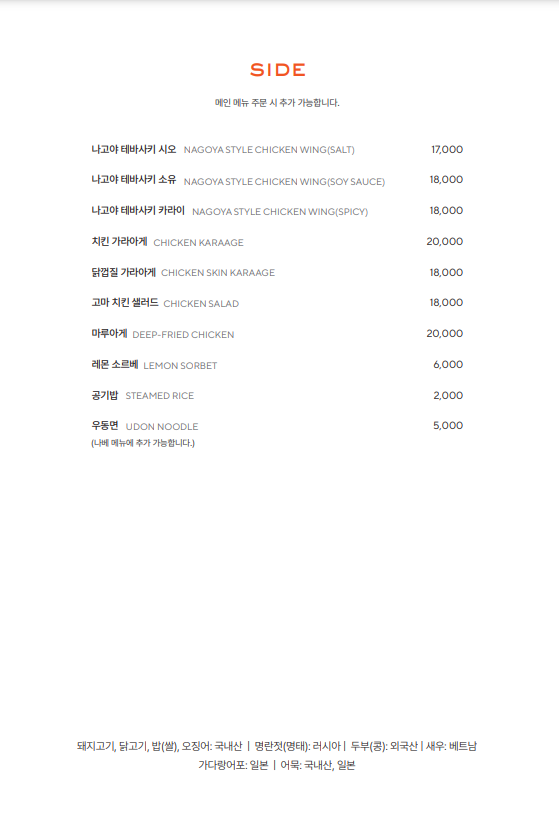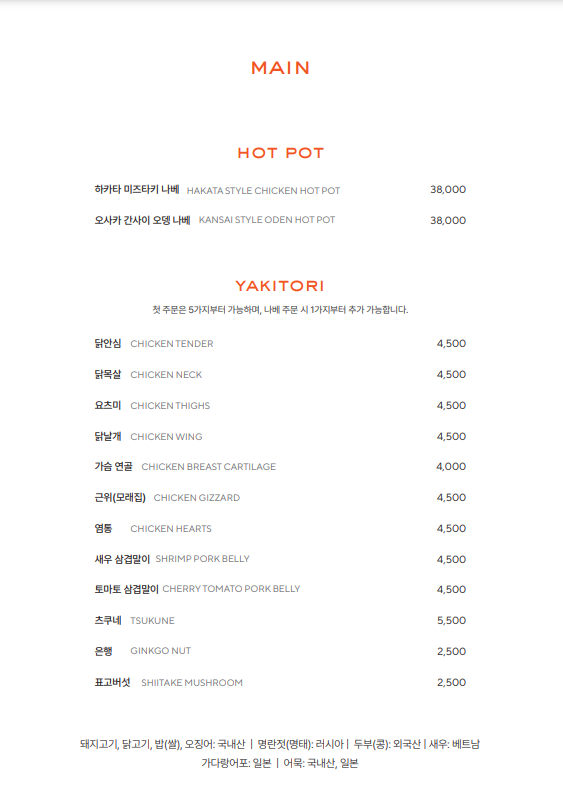 메뉴가 다 맛있어 보여서 처음 방문한 저로서는 무엇을 먹어야 할지 많이 고민이 되었지만, 이번에는 치킨 가라야케와 꼬치 5가지 맛을 선택하였습니다.