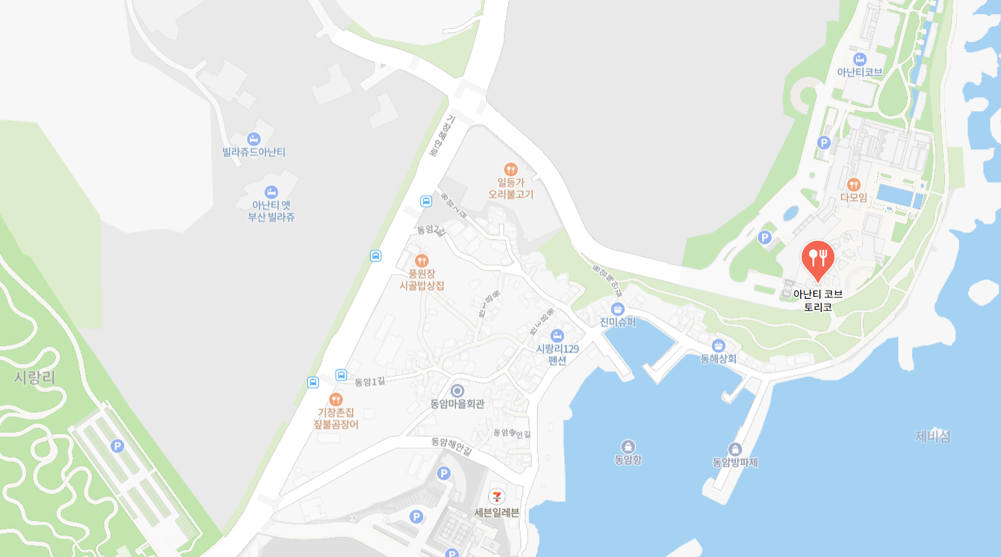 이곳의 주소는 부산광역시 기장군 기장읍 기장해안로 268-31 G층 아난티 타운이며, 롯데월드어드벤처 부산이 있는 오시리아관광단지에서 차로 대략 5분 정도밖에 걸리지 않아 접근성이 아주 좋습니다.