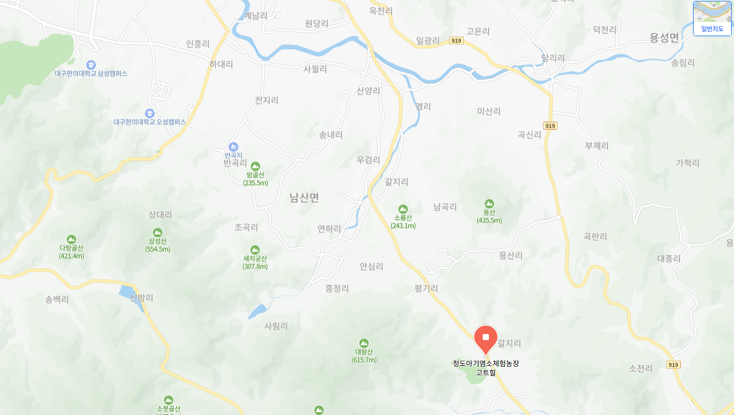'고트힐'의 주소는 경상북도 청도군 금천면 금천로 711로, 카페 뒤쪽의 푸르고 아름다운 자연을 배경으로 자리 잡고 있습니다.