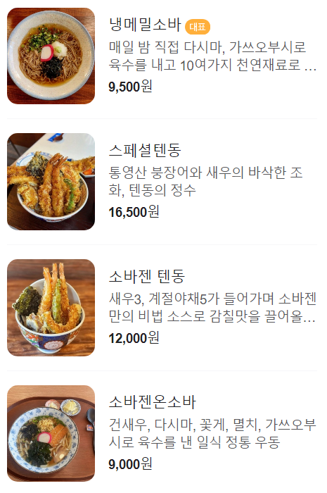 그 정도로 맛이 좋았던 곳인데, 그 집에 비견할 수 있을 만한 맛있는 텐동 가게가 바로 오늘 방문한 '소바젠'입니다.